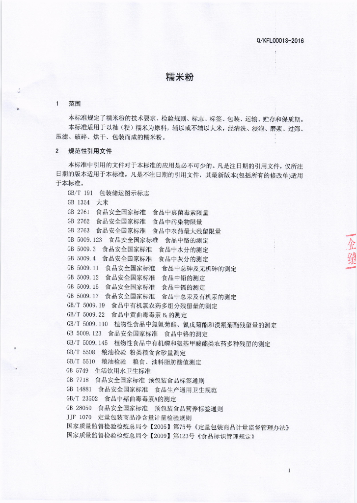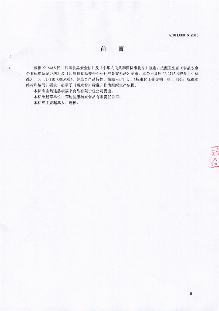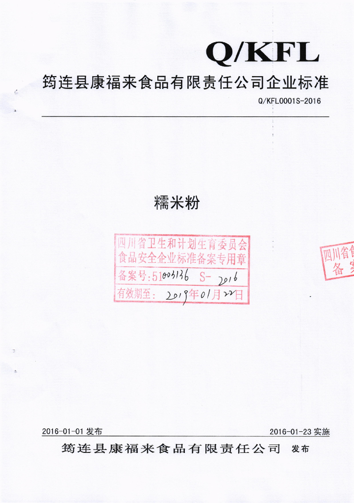 Q/KFL 0001S-2016 筠连县康福来食品有限责任公司 糯米粉