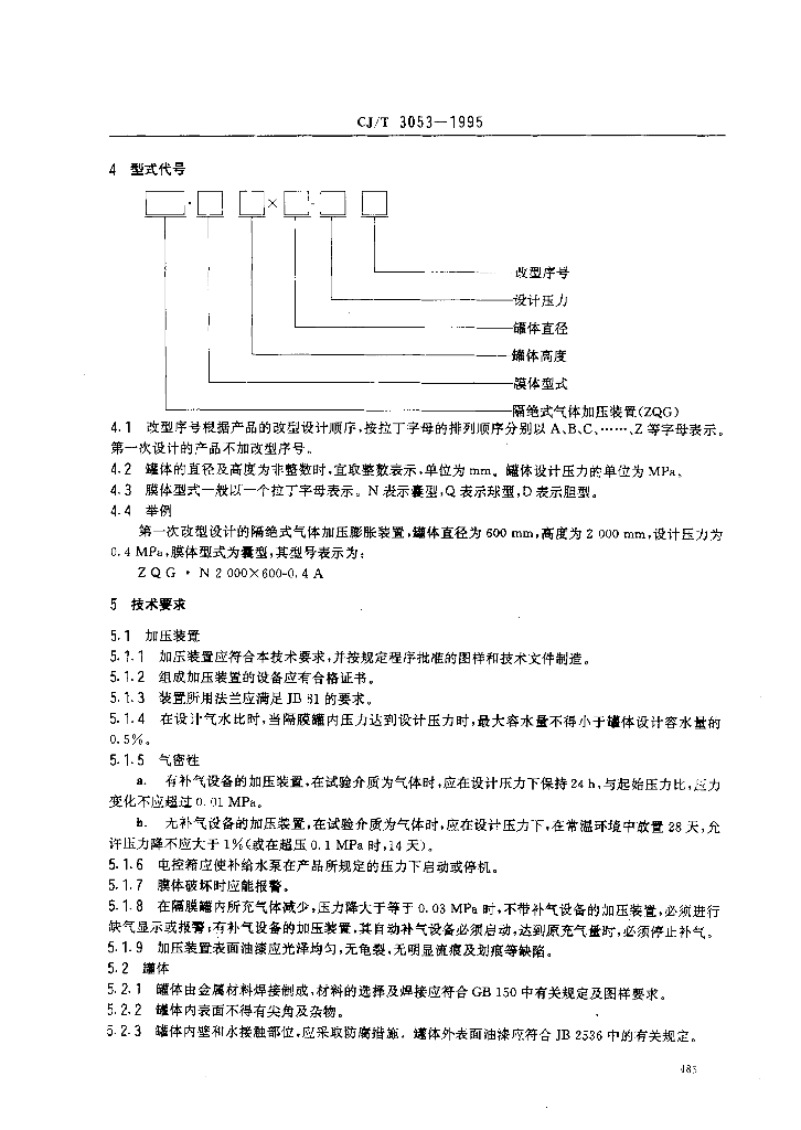 CJ/T 3053-1995 隔绝式气体加压膨胀装置
