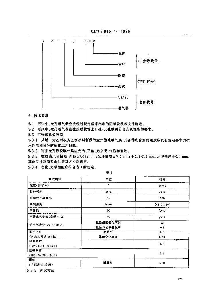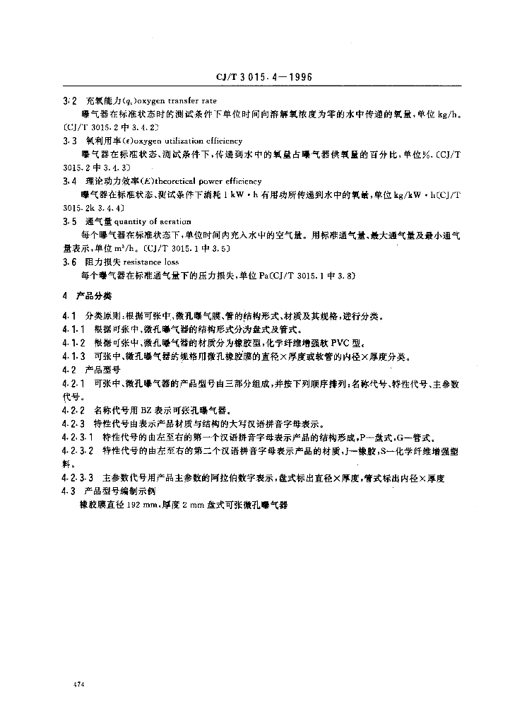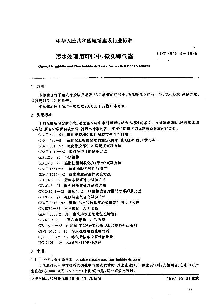 CJ/T 3015.4-1996 污水处理用可张中、微孔曝气器