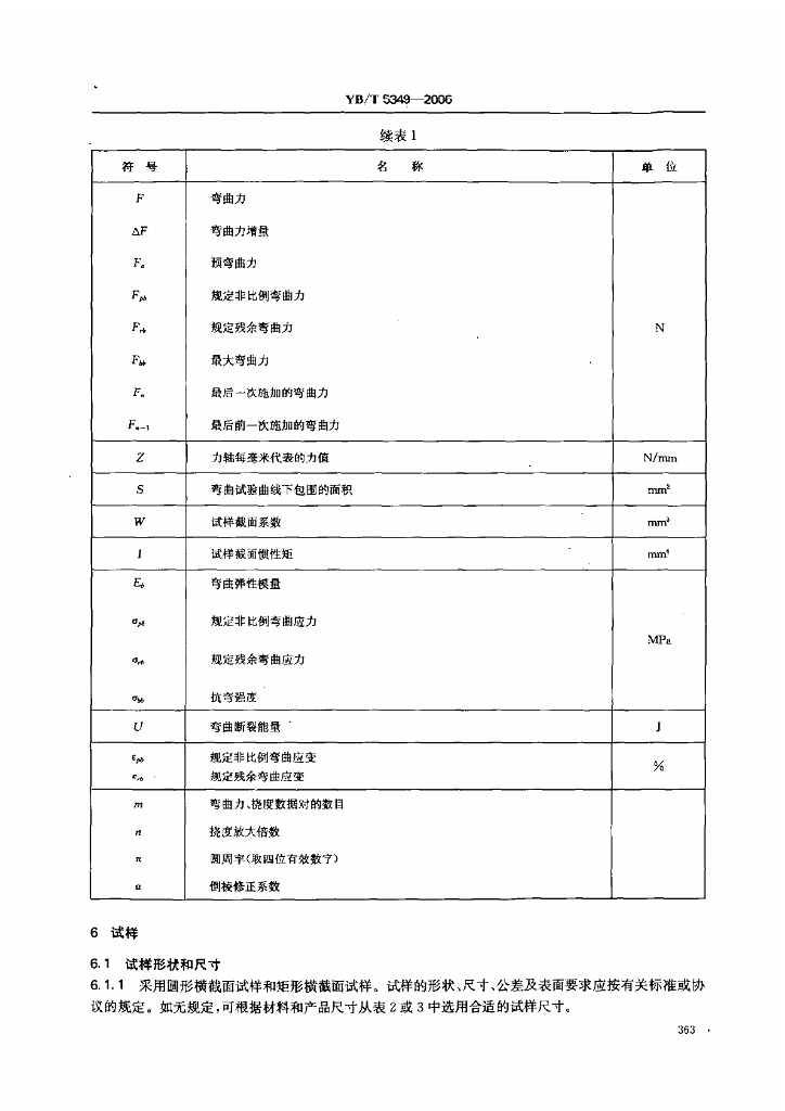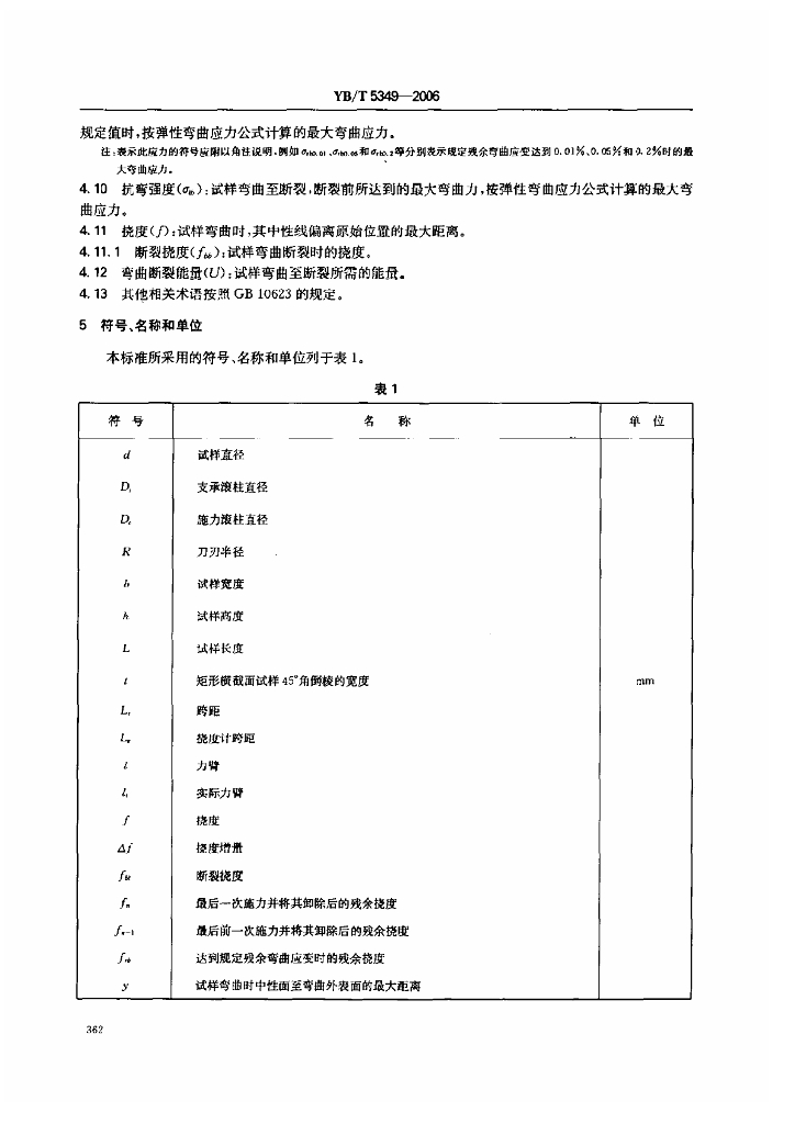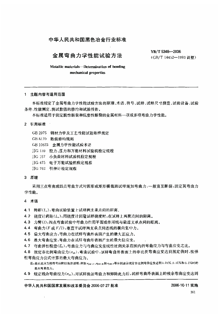 YB/T 5349-2006 金属弯曲力学性能试验方法