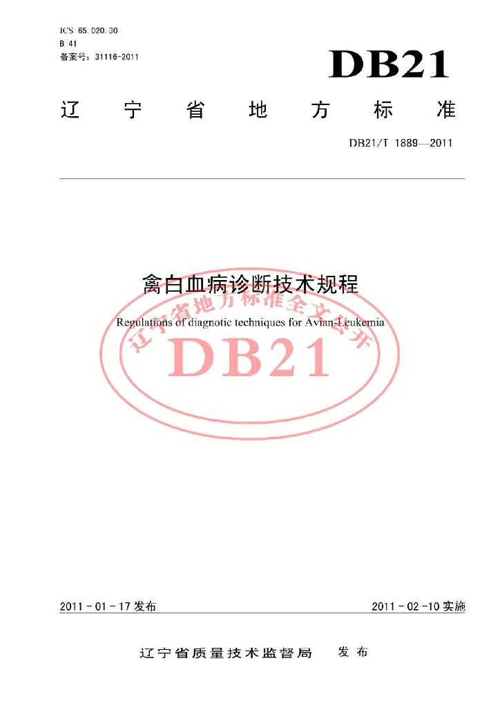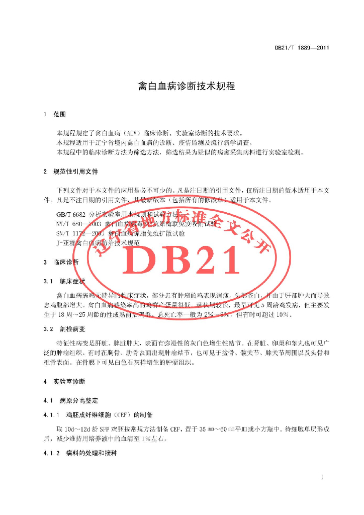 DB21/T 1889-2011 禽白血病诊断技术规程