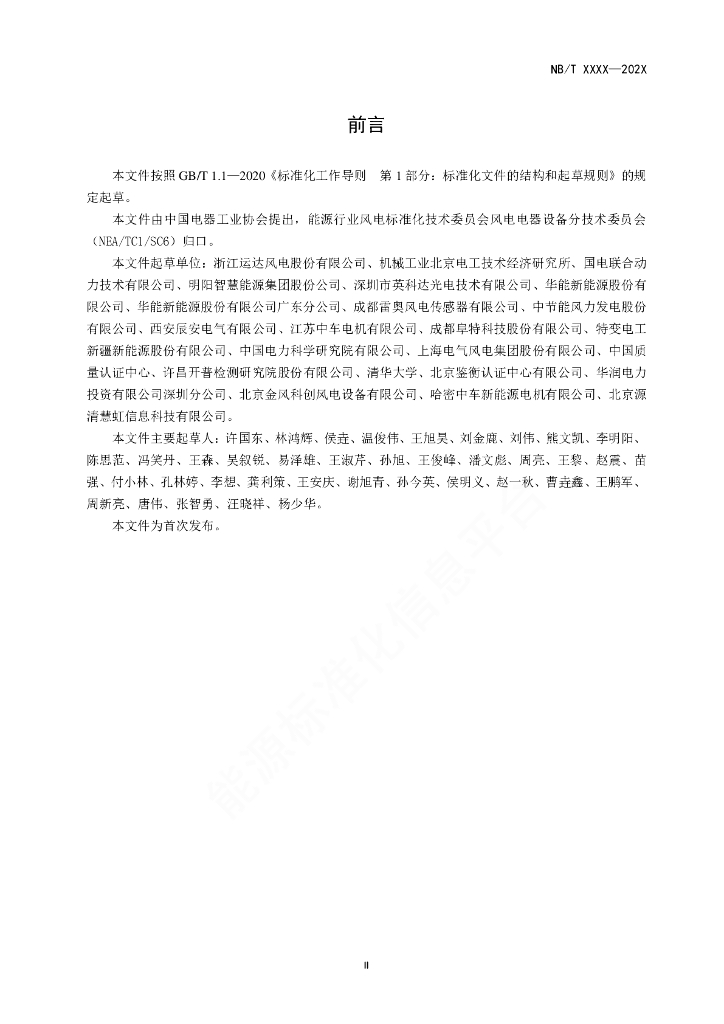浙江运达风电股份有限公司、机械工业北京电工技术经济研究所、国电联合动力技术有限公司、明阳智慧能源集团股份公司、深圳市英科达光电技术有限公司、华能新能源股份有限公司、华能新能源股份有限公司广东分公司、成都雷奥风电传感器有限公司、中节能风力发电股份有限公司、西安辰安电气有限公司、江苏中车电机有限公司、成都阜特科技股份有限公司、特变电工新疆新能源股份有限公司、中国电力科学研究院有限公司、上海电气风电集团股份有限公司、中国质量认证中心、许昌开普检测研究院股份有限公司、清华大学、北京鉴衡认证中心有限公司、华润电力投