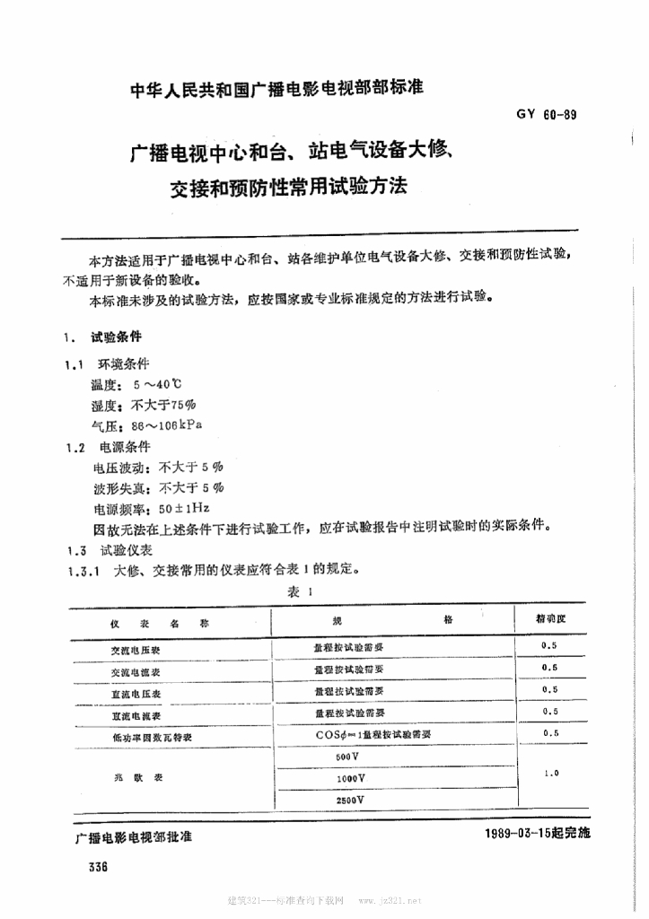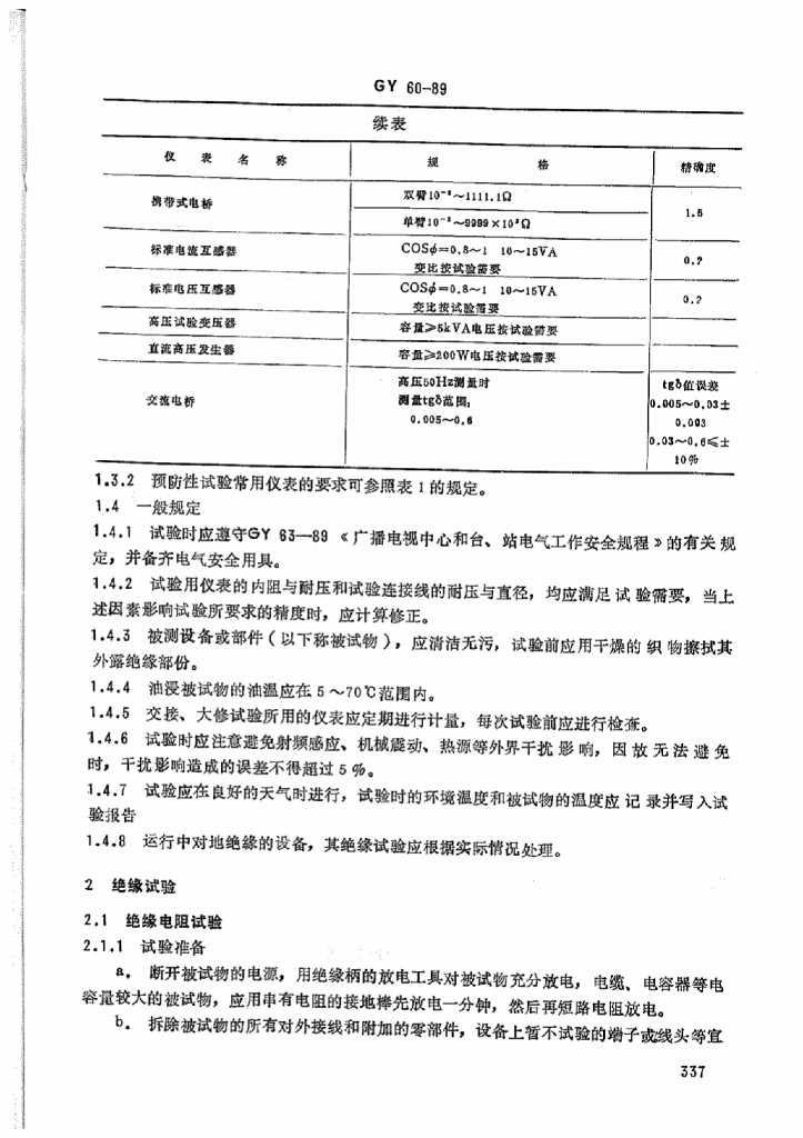 GY/T 60-1989 广播电视中心和台、站电气设备大修、交接和预防性实验常用方法