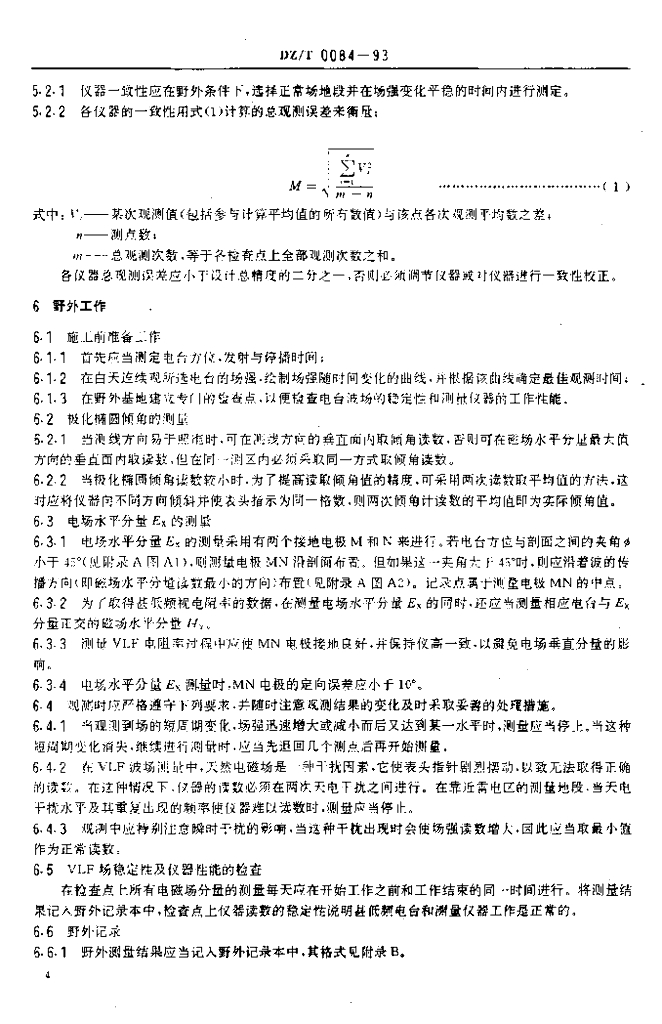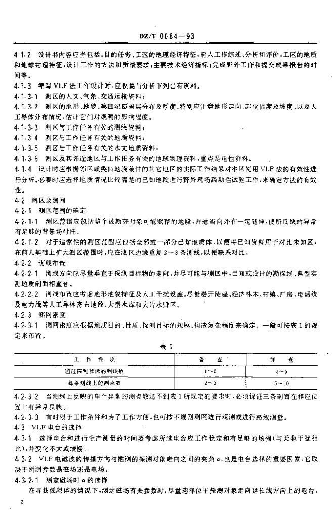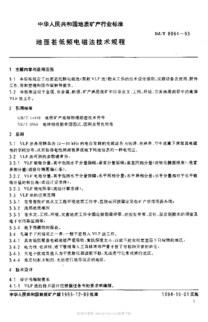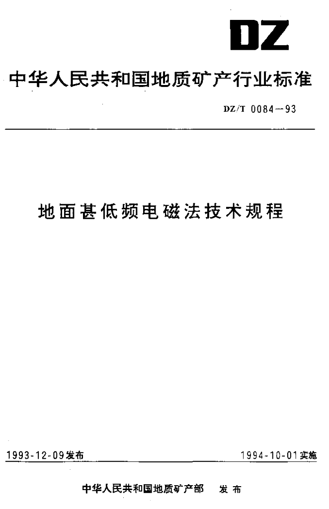 DZ/T 0084-1993 地面甚低频电磁法技术规程