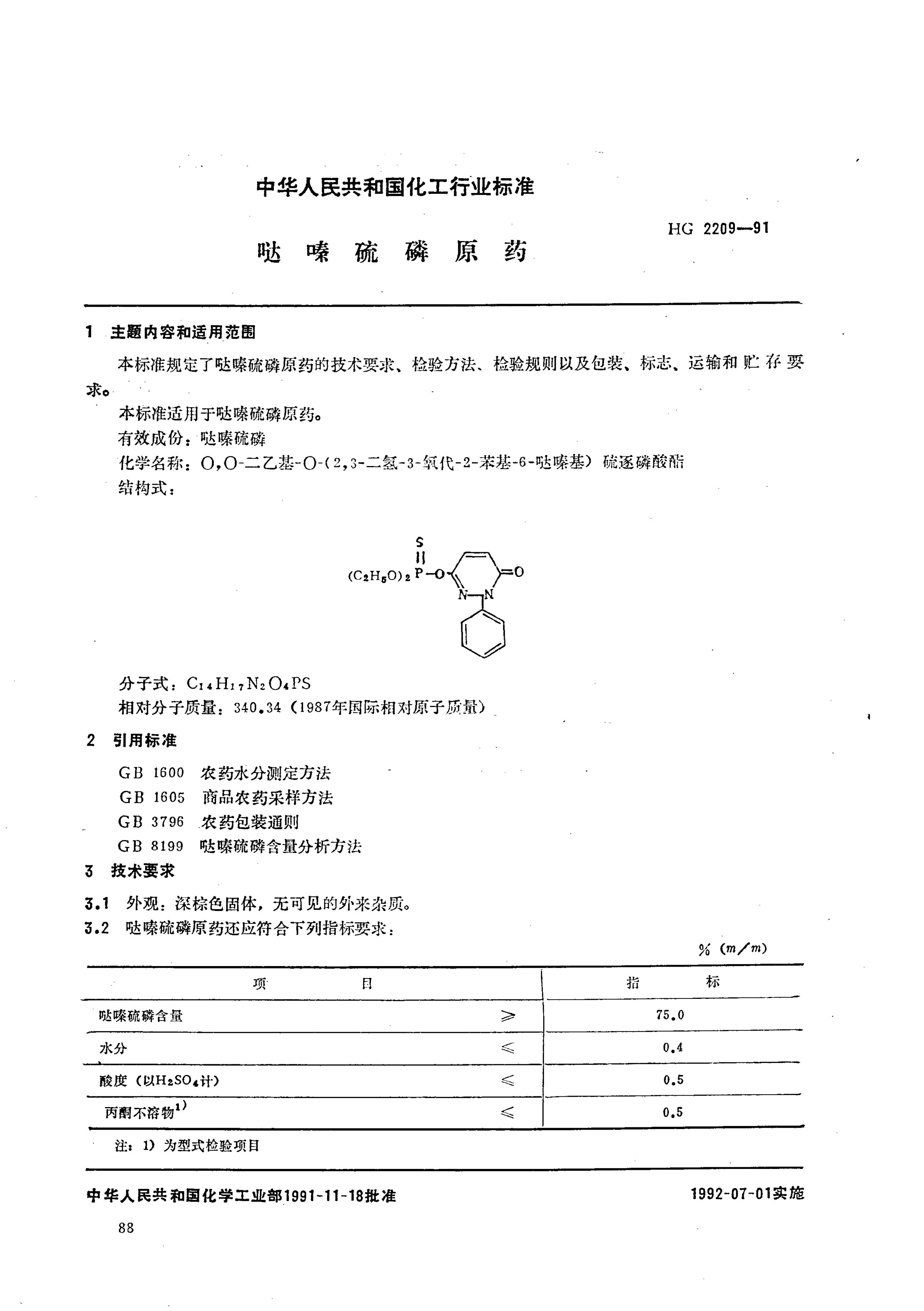 HG/T 2209-1991 哒嗪硫磷原药