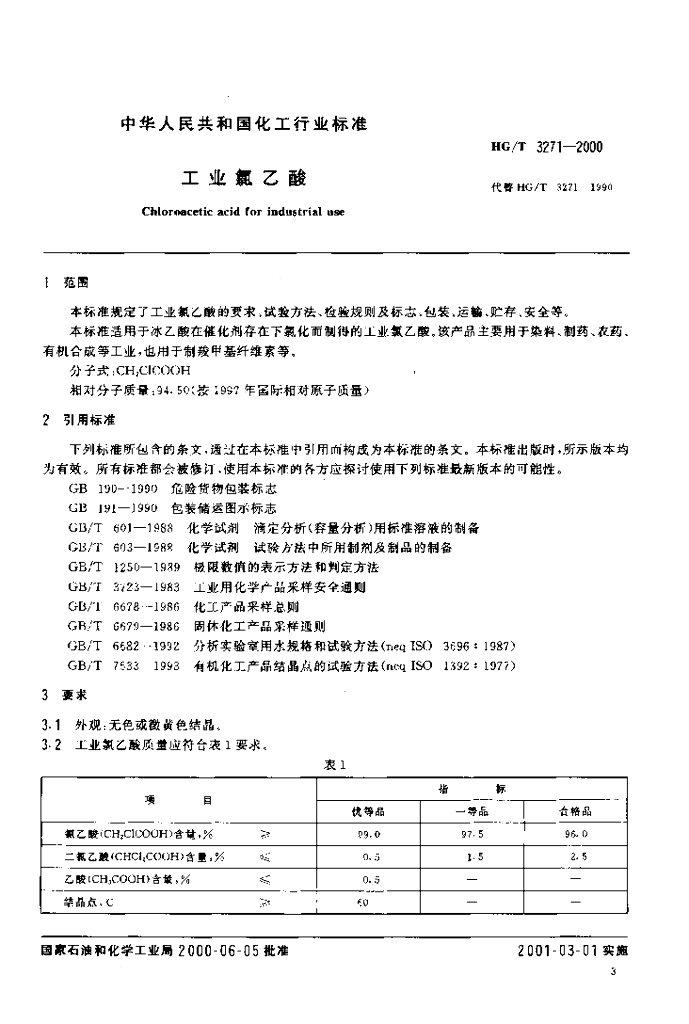 HG/T 3271-2000 工业氯乙酸