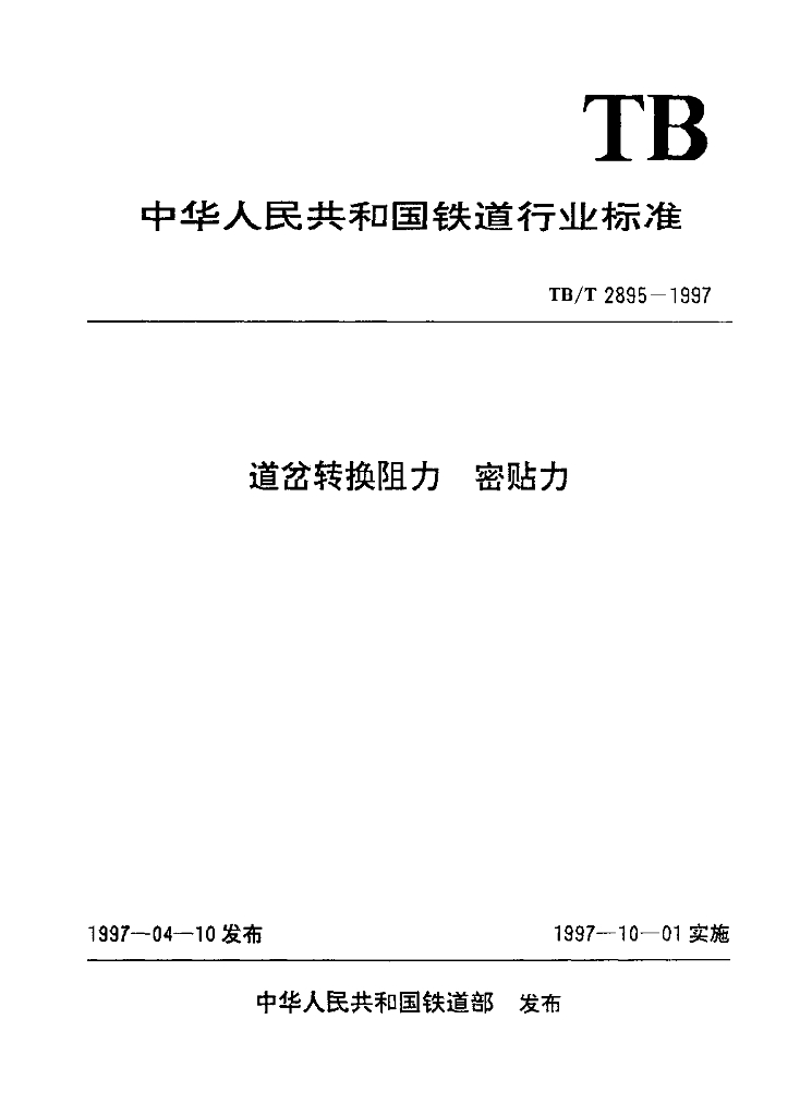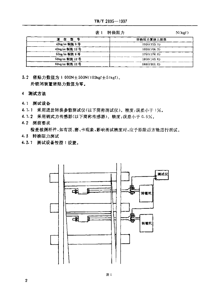 TB/T 2895-1997 道岔转换阻力 密贴力