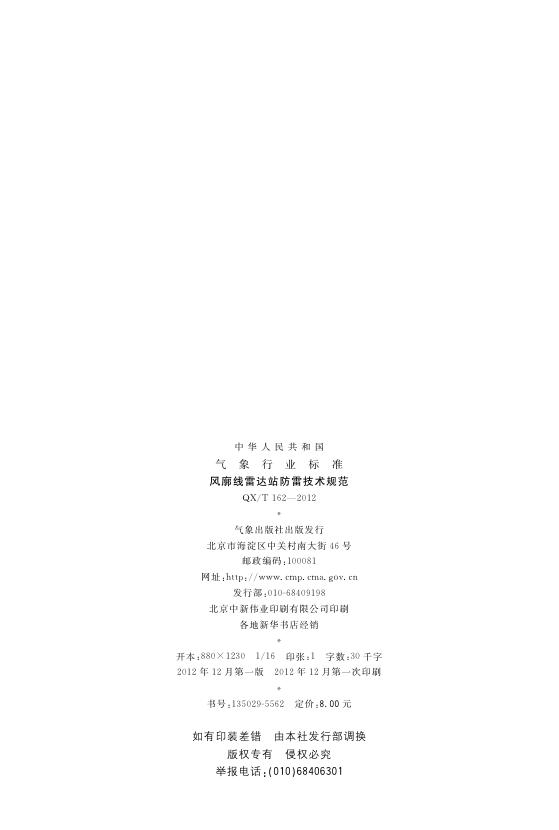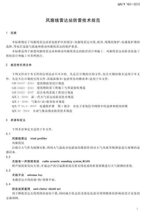 QX/T 162-2012 风廓线雷达站防雷技术规范