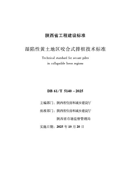 DB61/T 5140-2025 湿陷性黄土地区咬合式排桩技术标准
