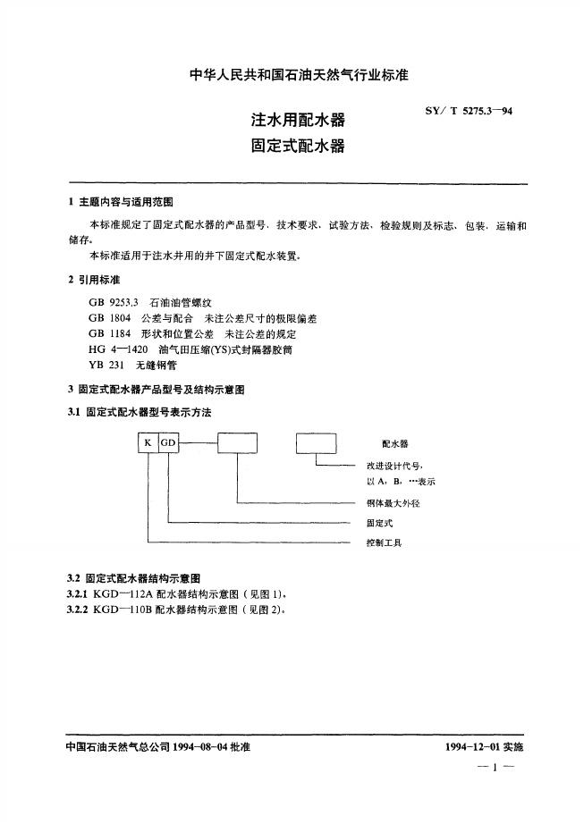 SY/T 5275.3-1994 注水用配水器 固定式配水器