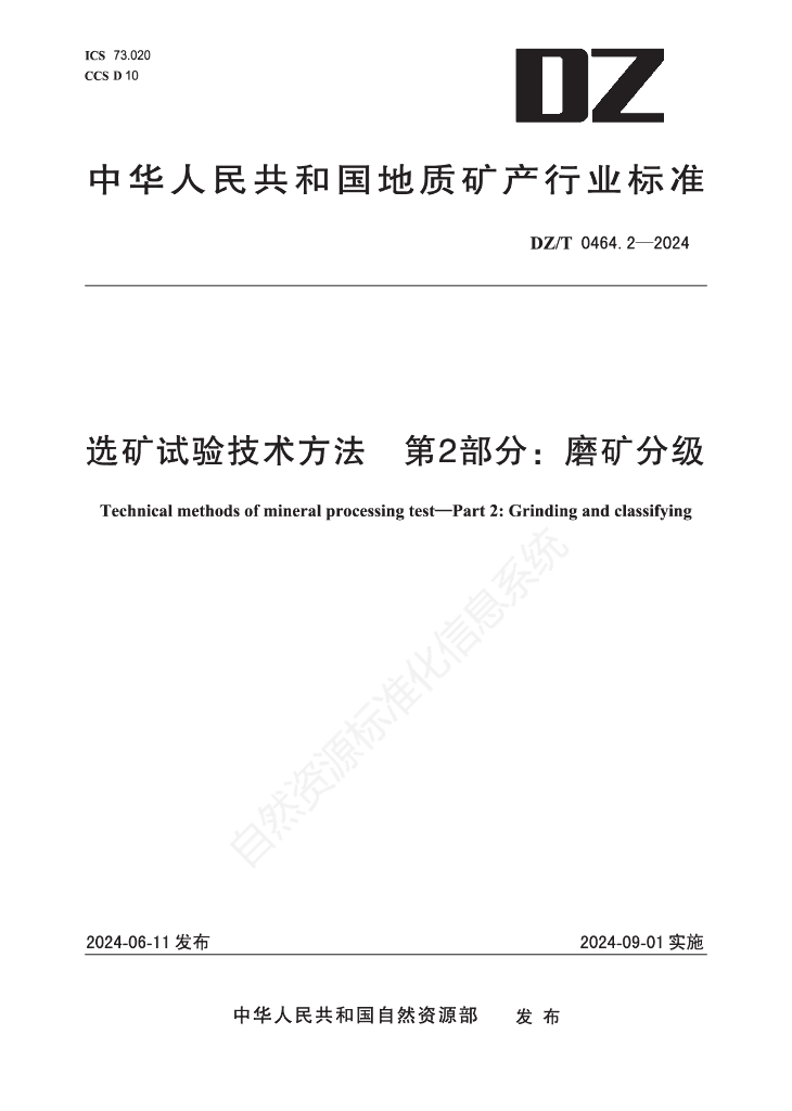 DZ/T 0464.2-2024 选矿试验技术方法 第2部分:磨矿分级