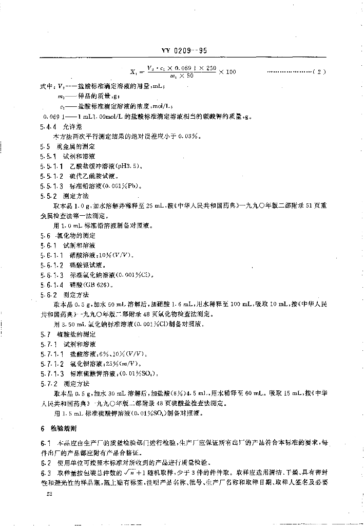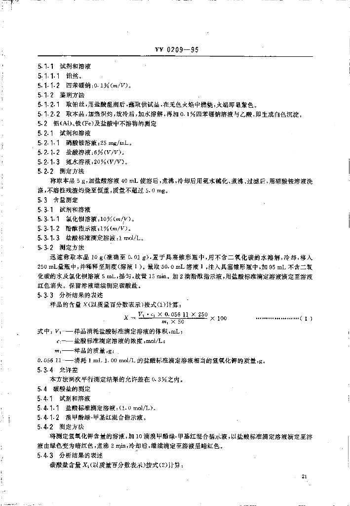 YY 0209-1995 药用辅料 氢氧化钾