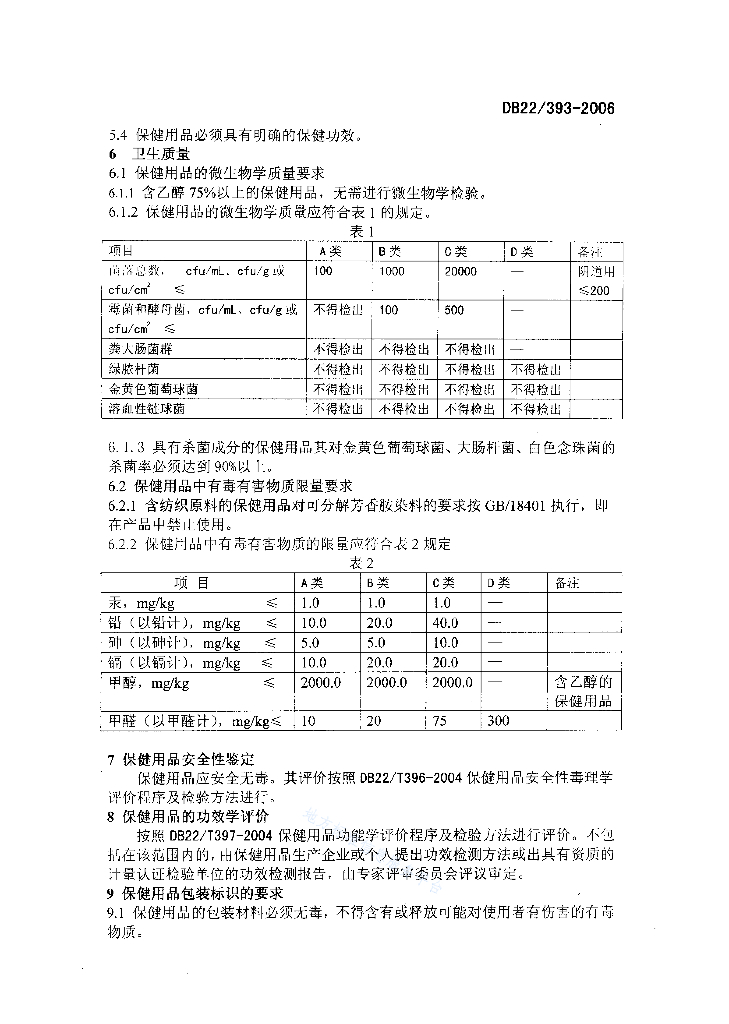 DB22/ 393-2006 保健用品卫生要求