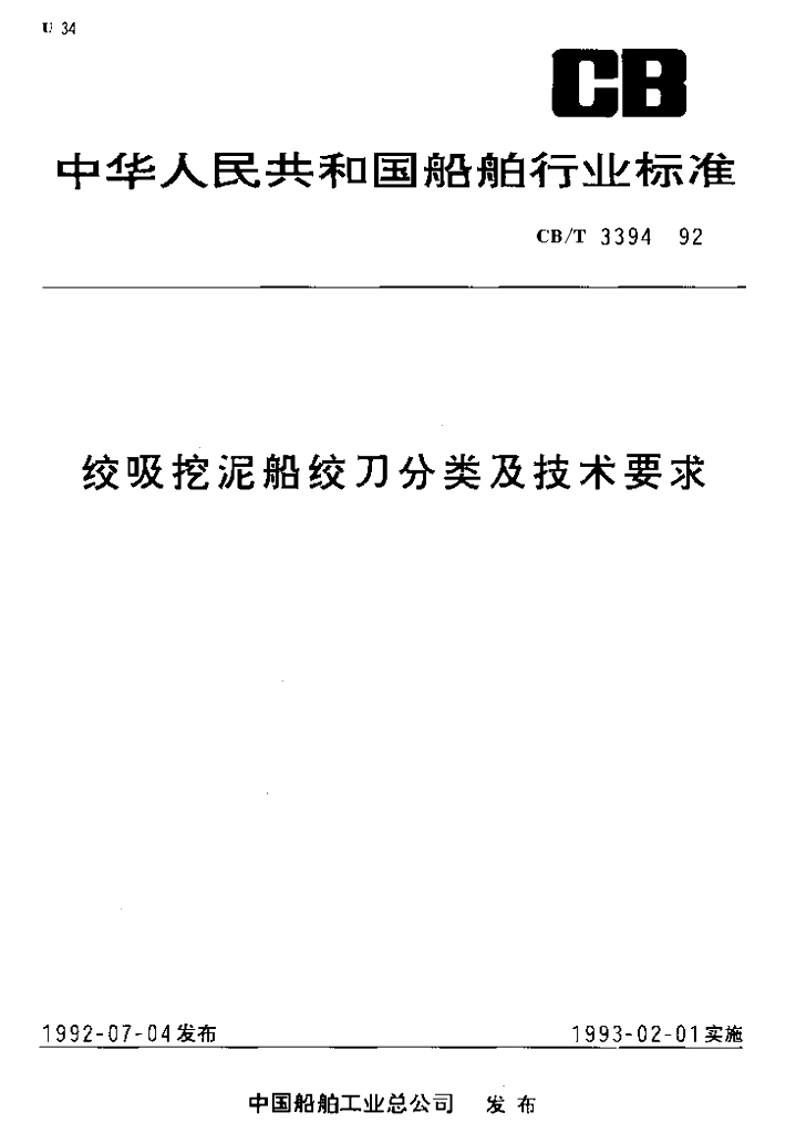 CB/T 3394-1992 绞吸挖泥船绞刀分类及技术要求