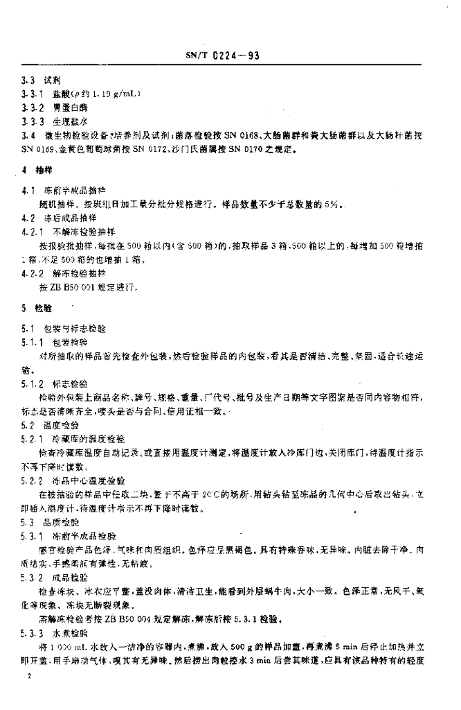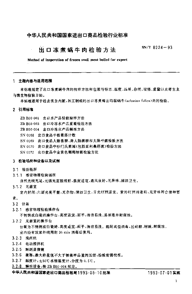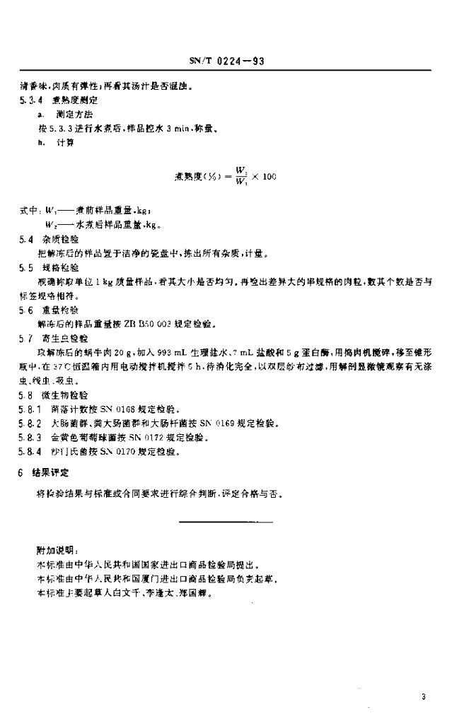 SN/T 0224-1993 出口冻煮蜗牛肉检验方法