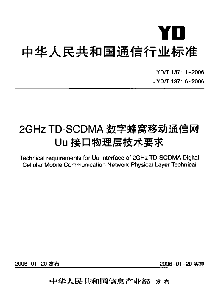 YD/T 1371.6-2006 2GHz TD-SCDMA 数字蜂窝移动通信网 Uu 接口物理层技术要求 第六部分:物理层测量
