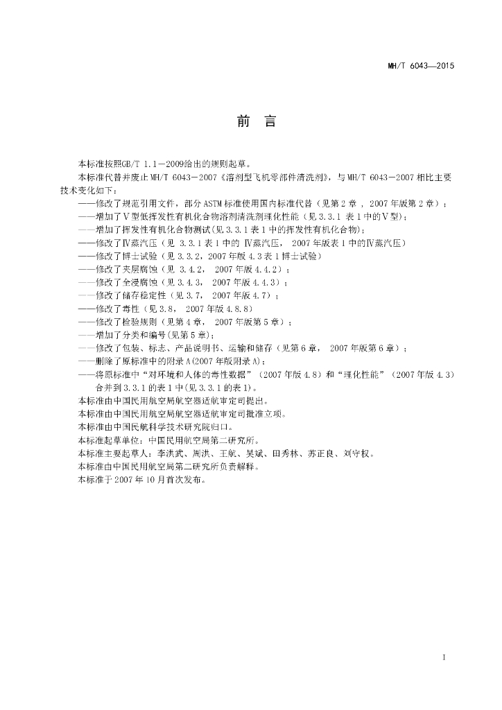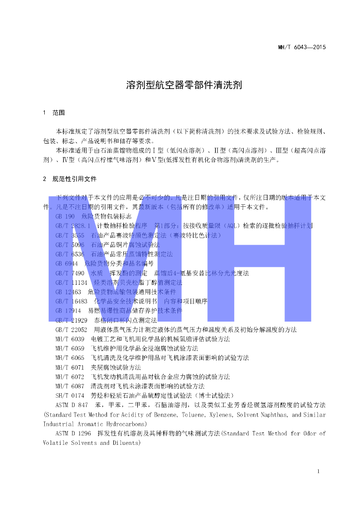 MH/T 6043-2015 溶剂型航空器零部件清洗剂