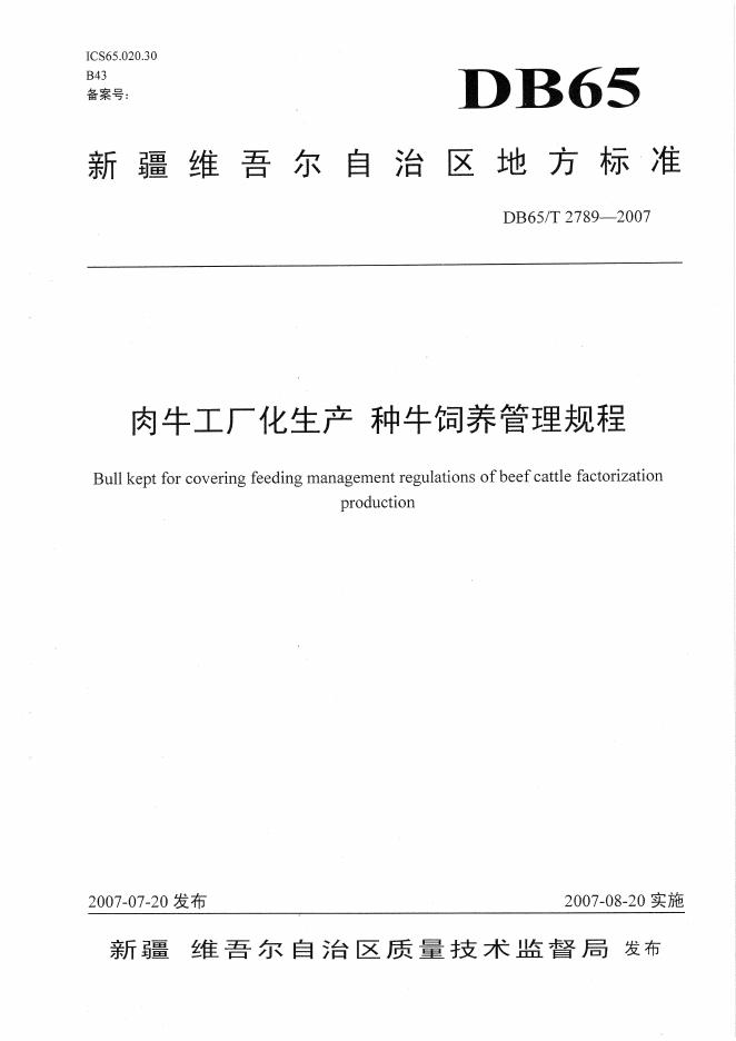 DB65/T 2789-2007 肉牛工厂化生产 种牛饲养管理规程