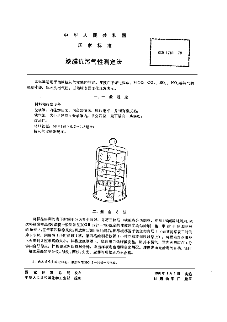 GB/T 1761-1979 漆膜抗污气性测定法