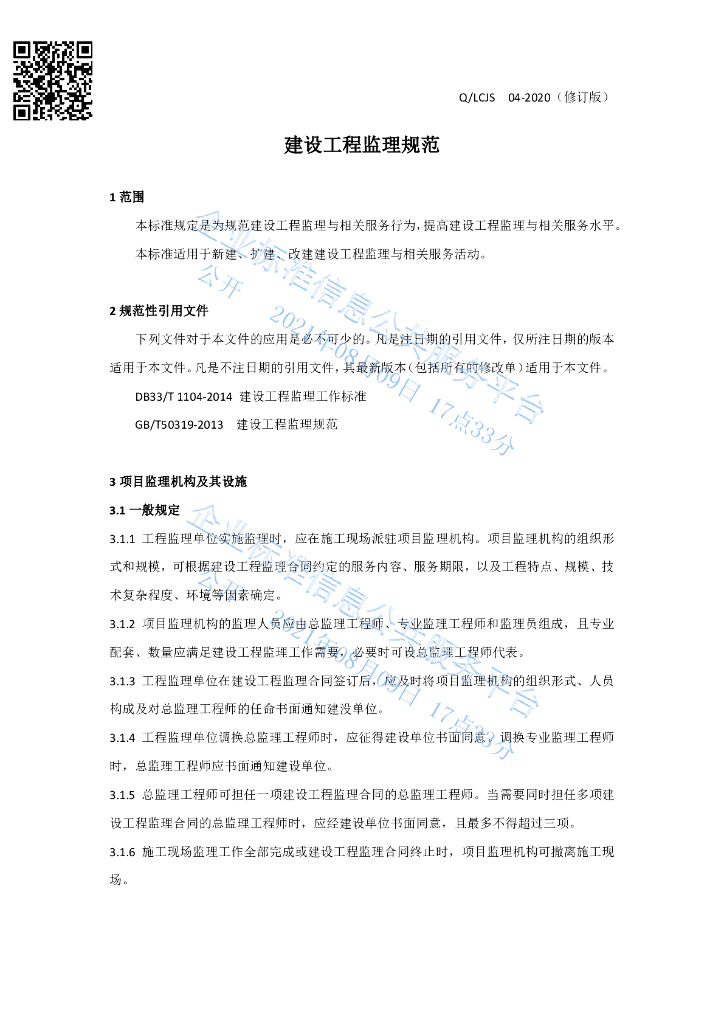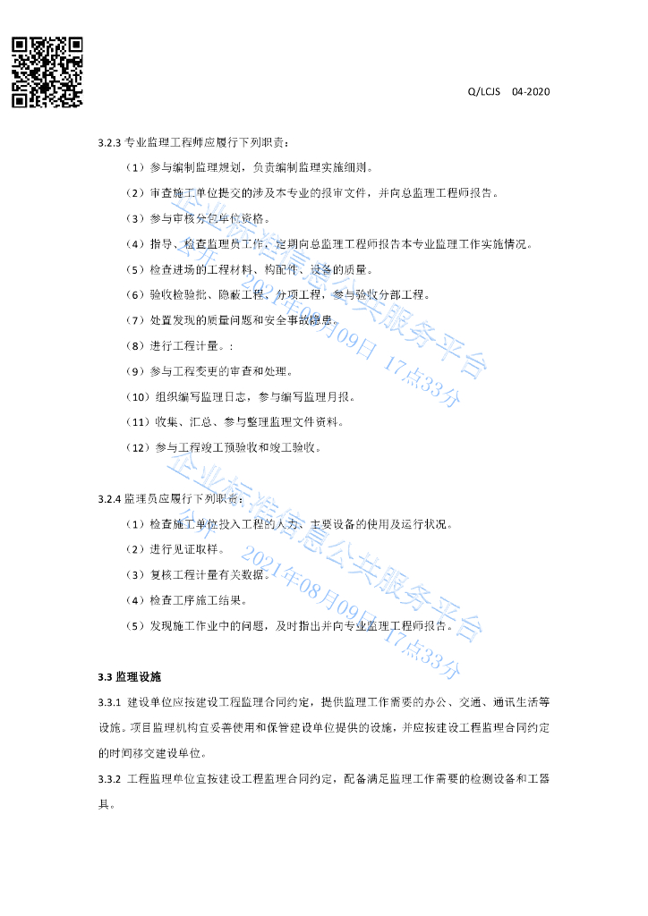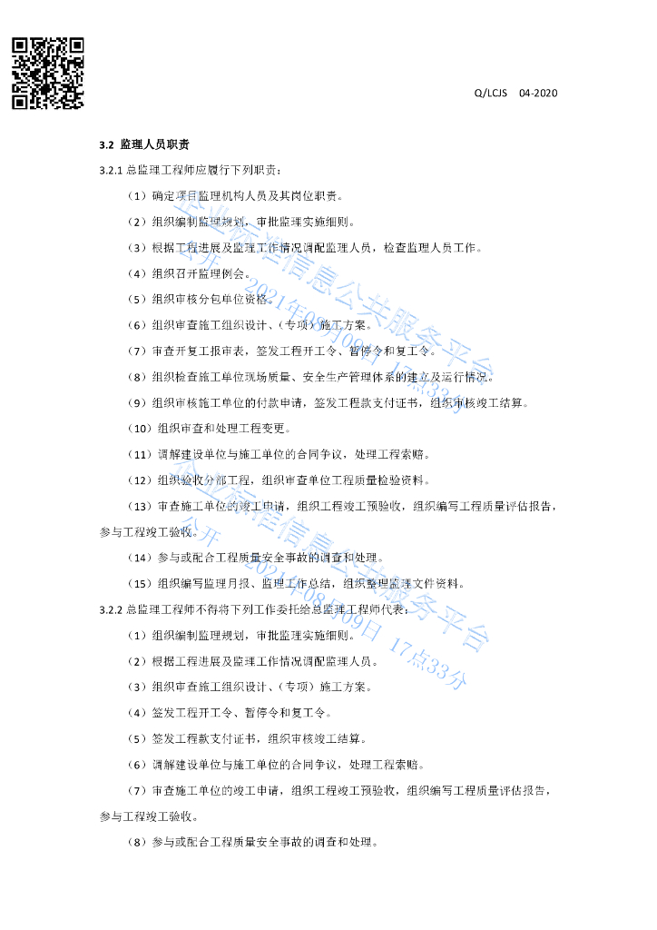 Q/LCJS 04-2020(修订版) 建设工程监理规范