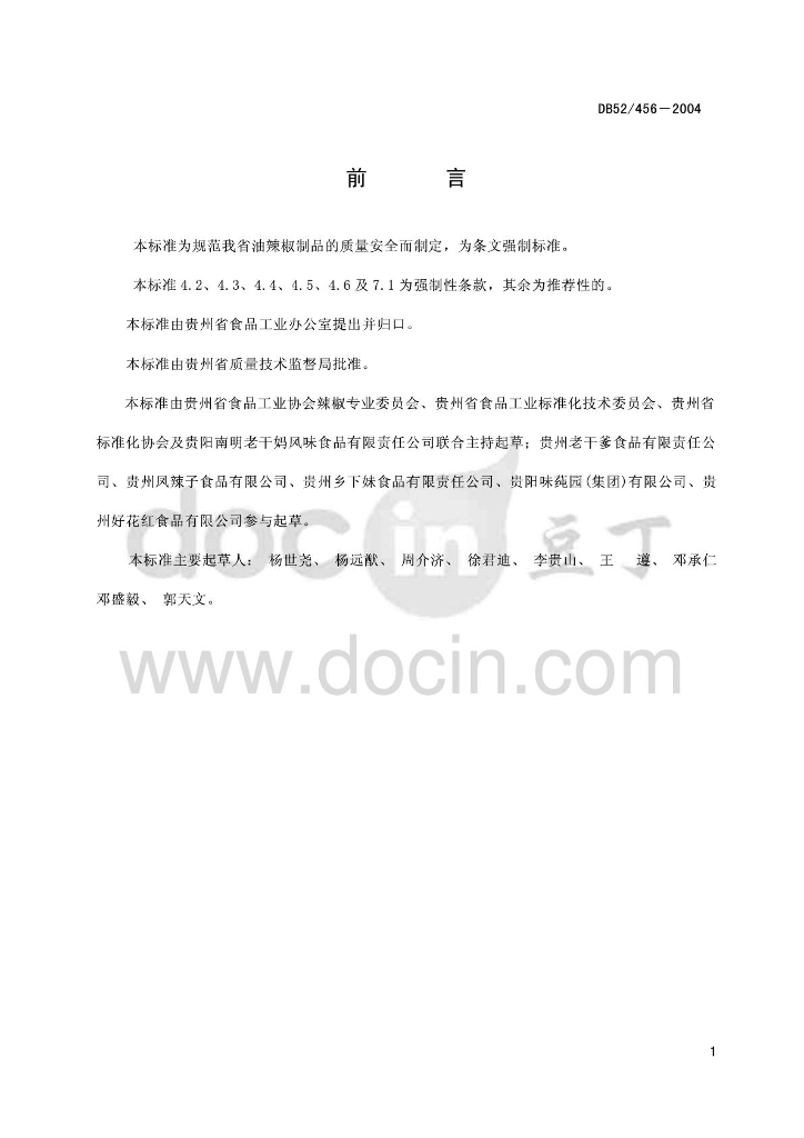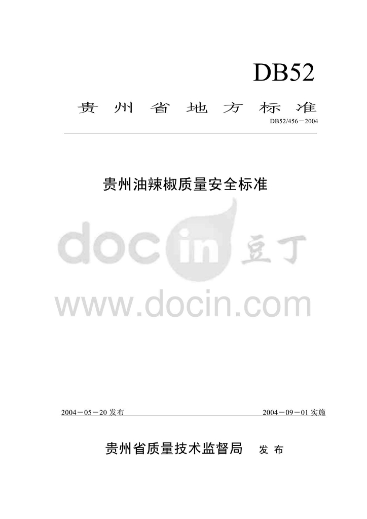 DB52/ 456-2004 贵州油辣椒质量安全标准