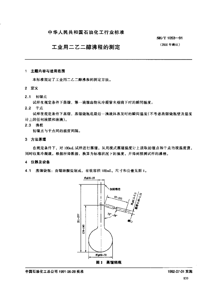 SH/T 1053-1991 工业用二乙二醇沸程的测定