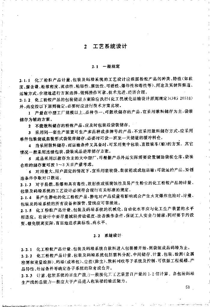 HG/T 20663-1999 化工粉粒产品计量、包装及码垛系统设计规定(附条文说明)