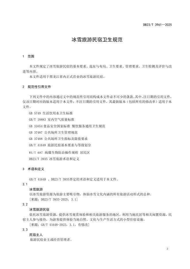 DB23/T 3961-2025 冰雪旅游民宿卫生规范