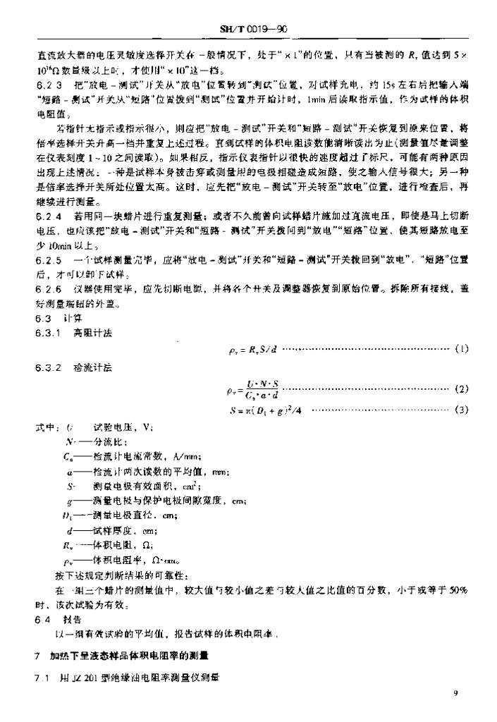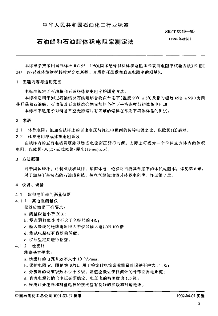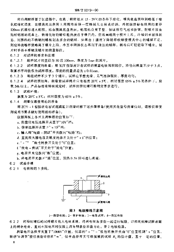 SH/T 0019-1990 石油蜡和石油脂体积电阻率测定法