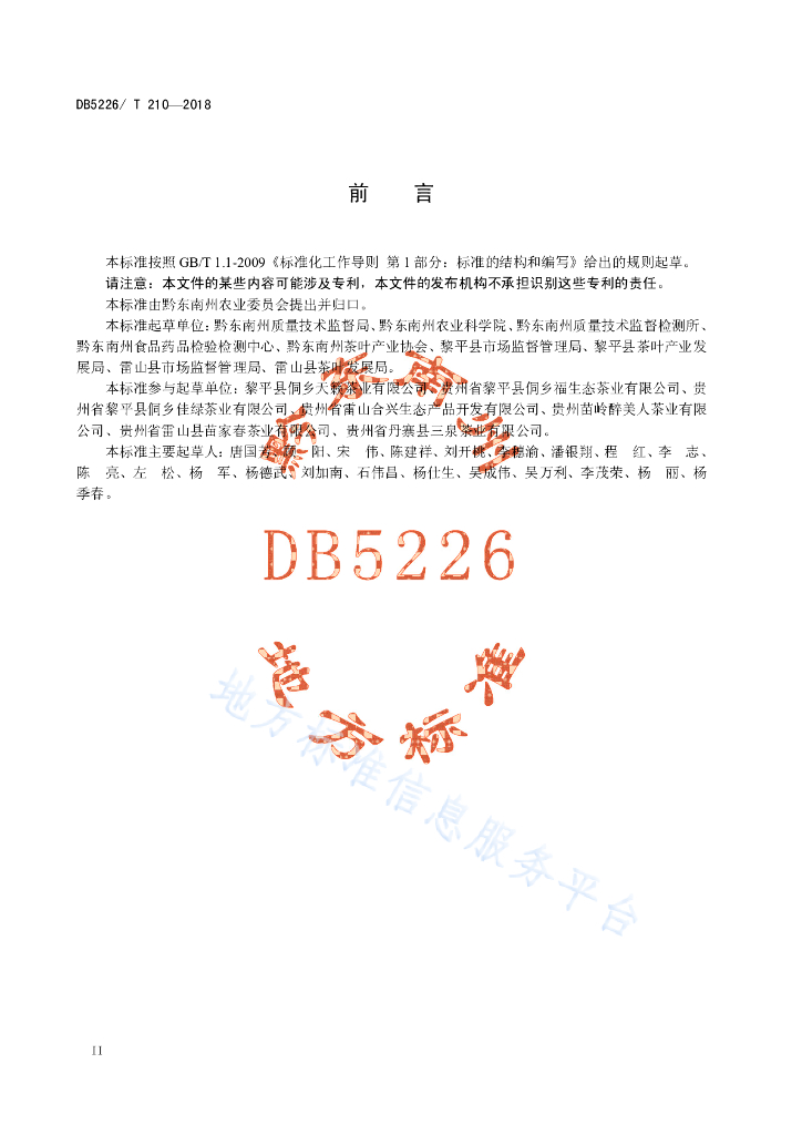 DB5226/T 210-2018 黎平红 红茶