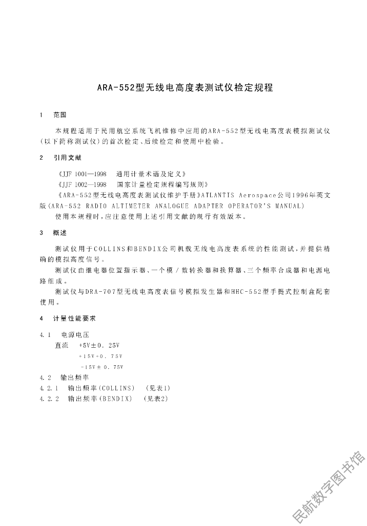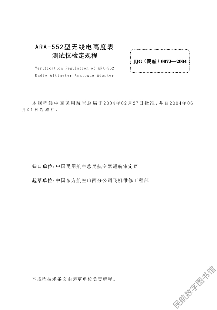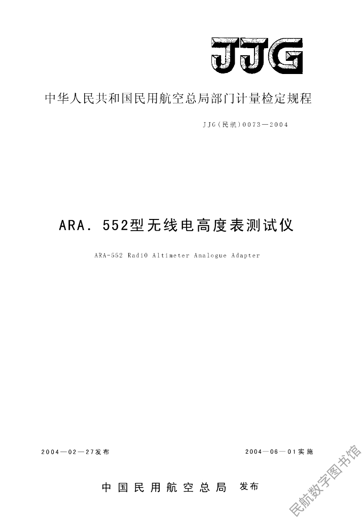 JJG(民航)0073-2004 ARA.552型无线电高度表测试仪