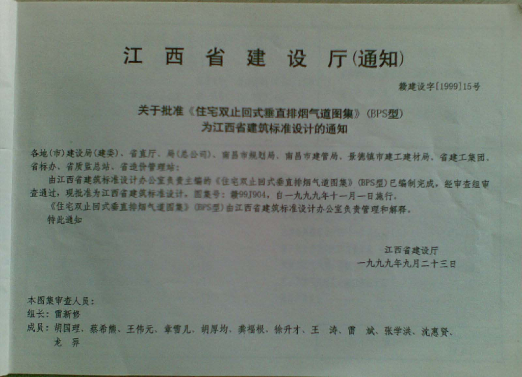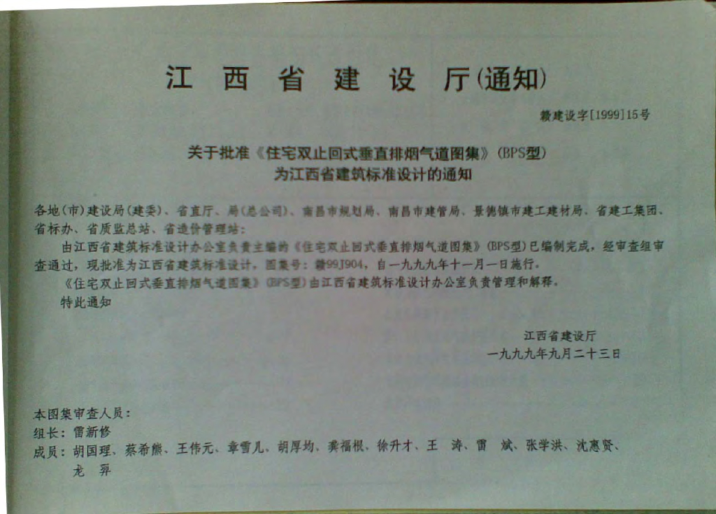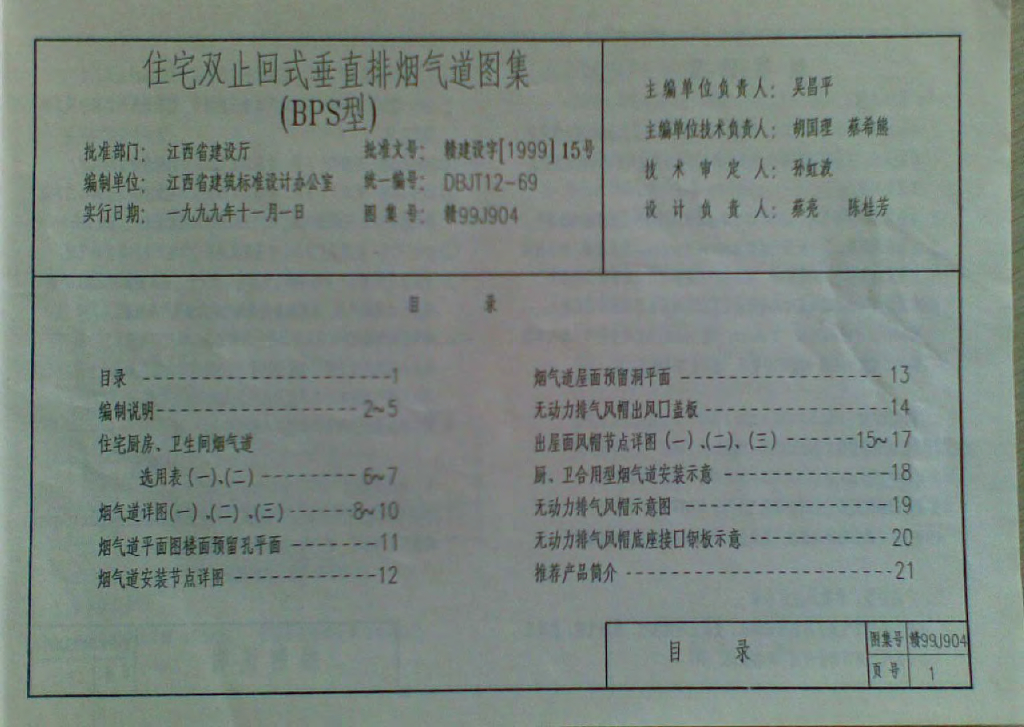 赣99J904 住宅双止回式垂直排烟气道图集(清晰度差)