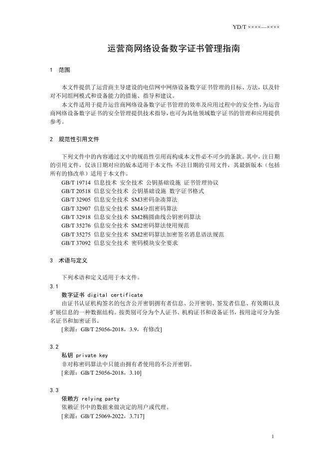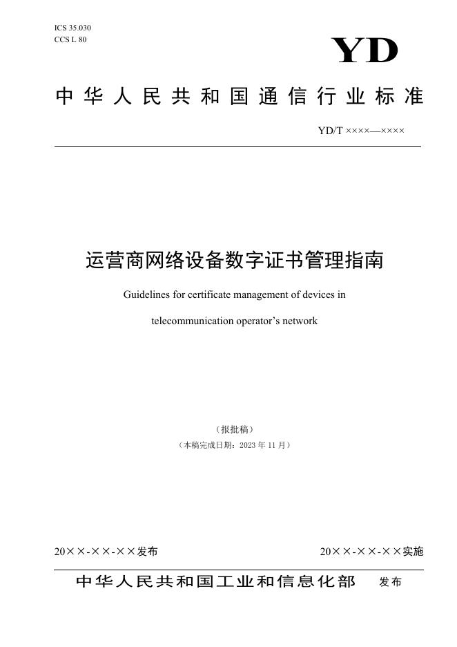 YD/T 6020-2024 运营商网络设备数字证书管理指南