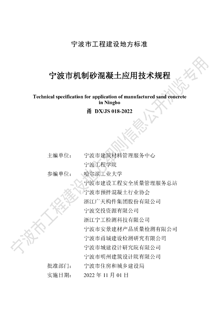 甬DX/JS 018-2022 宁波市机制砂混凝土应用技术规程