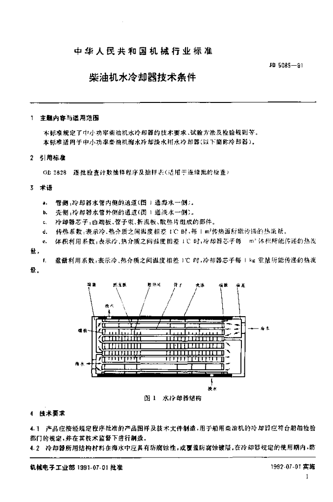 JB/T 5085-1991 柴油机水冷却器技术条件