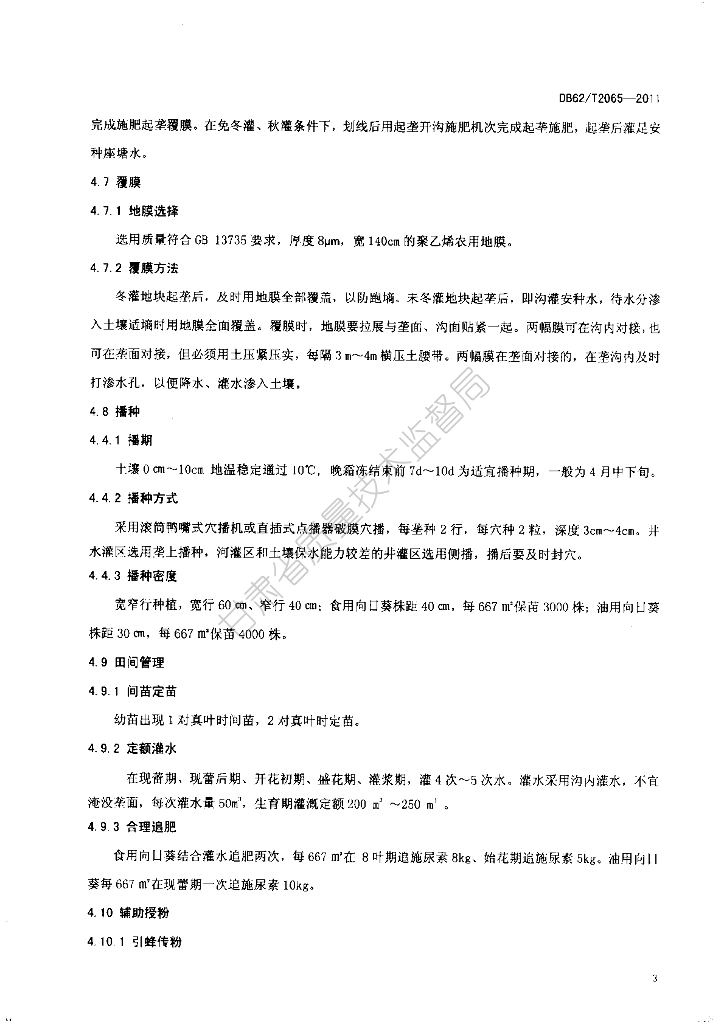 DB62/T 2065-2011 武威市向日葵全膜垄作沟灌栽培技术规程