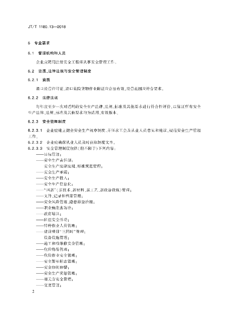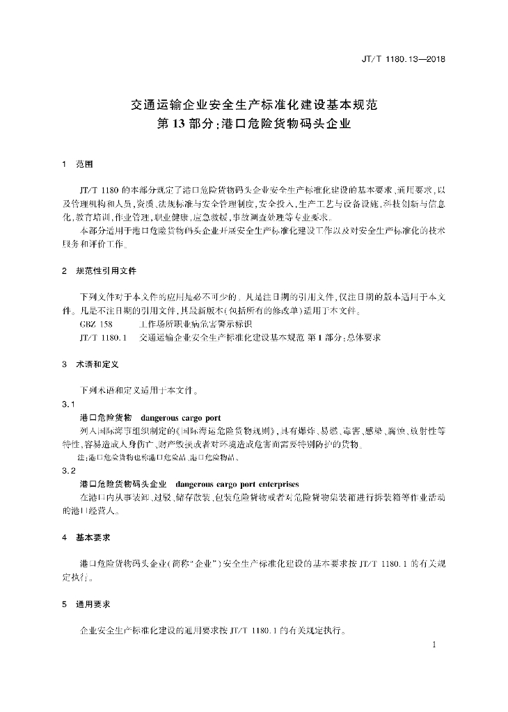 JT/T 1180.13-2018 交通运输企业安全生产标准化建设基本规范 第13部分:港口危险货物码头企业