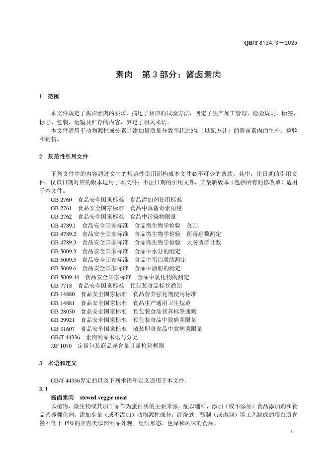 QB/T 8124.3-2025 素肉 第3部分:酱卤素肉