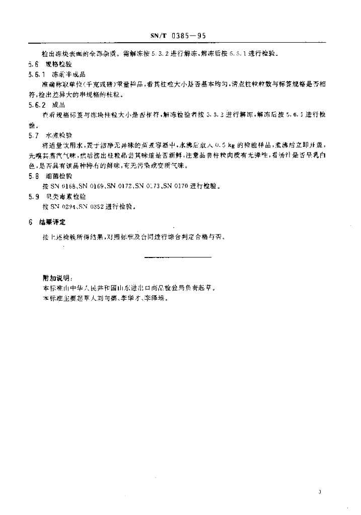 SN/T 0385-1995 出口冻扇贝柱检验规程