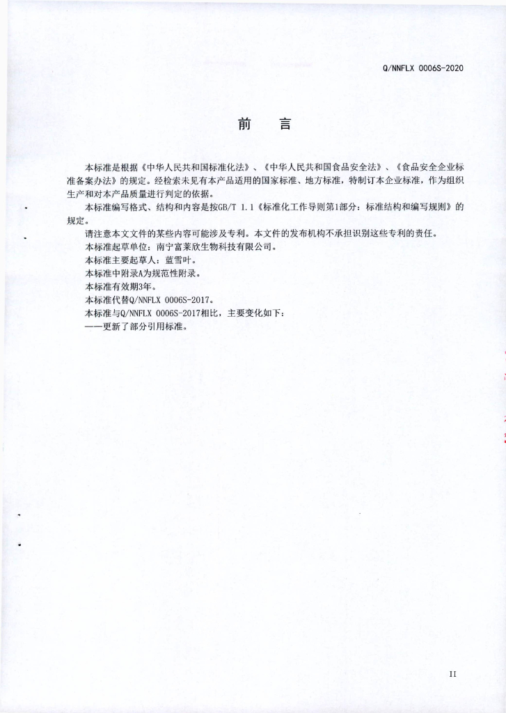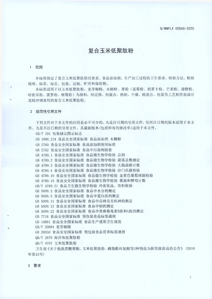 Q/NNFLX 0006S-2020 复合玉米低聚肽粉