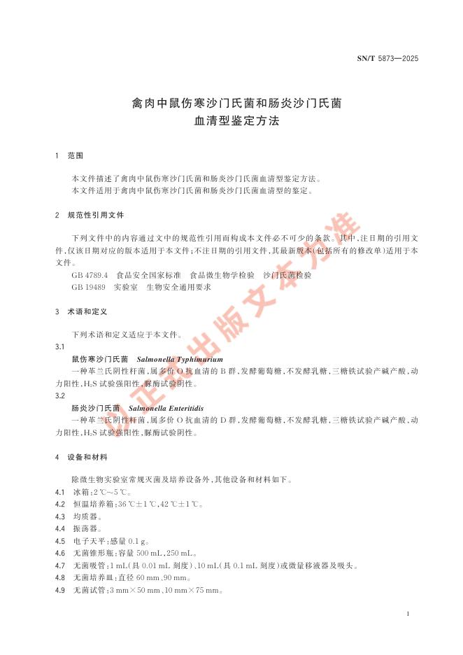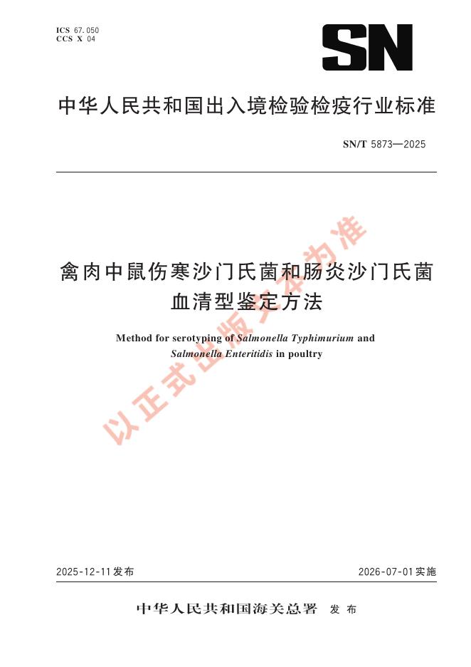 SN/T 5873-2025 禽肉中鼠伤寒沙门氏菌和肠炎沙门氏菌血清型鉴定方法
