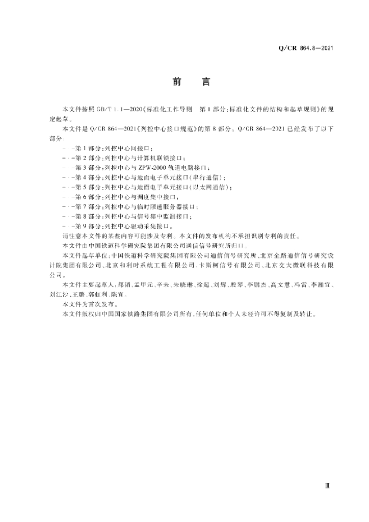 Q/CR 864.8-2021 列控中心接口规范 第8部分:列控中心与信号集中监测接口