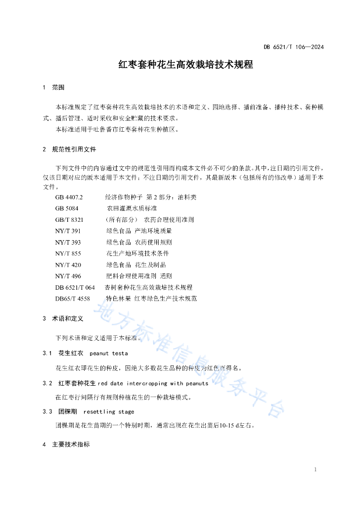 DB6521/T 106-2024 红枣套种花生高效栽培技术规程