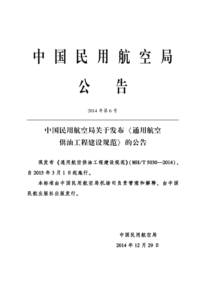 MH/T 5030-2014 通用航空供油工程建设规范