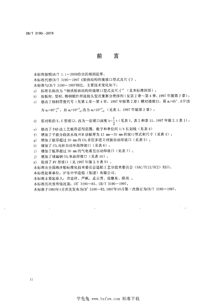 CB/T 3190-2019 钢质船体结构焊接坡口型式及尺寸