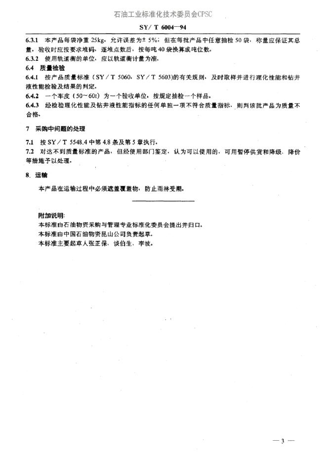 SY/T 60004-1994 钻井液用造浆材料采购规定