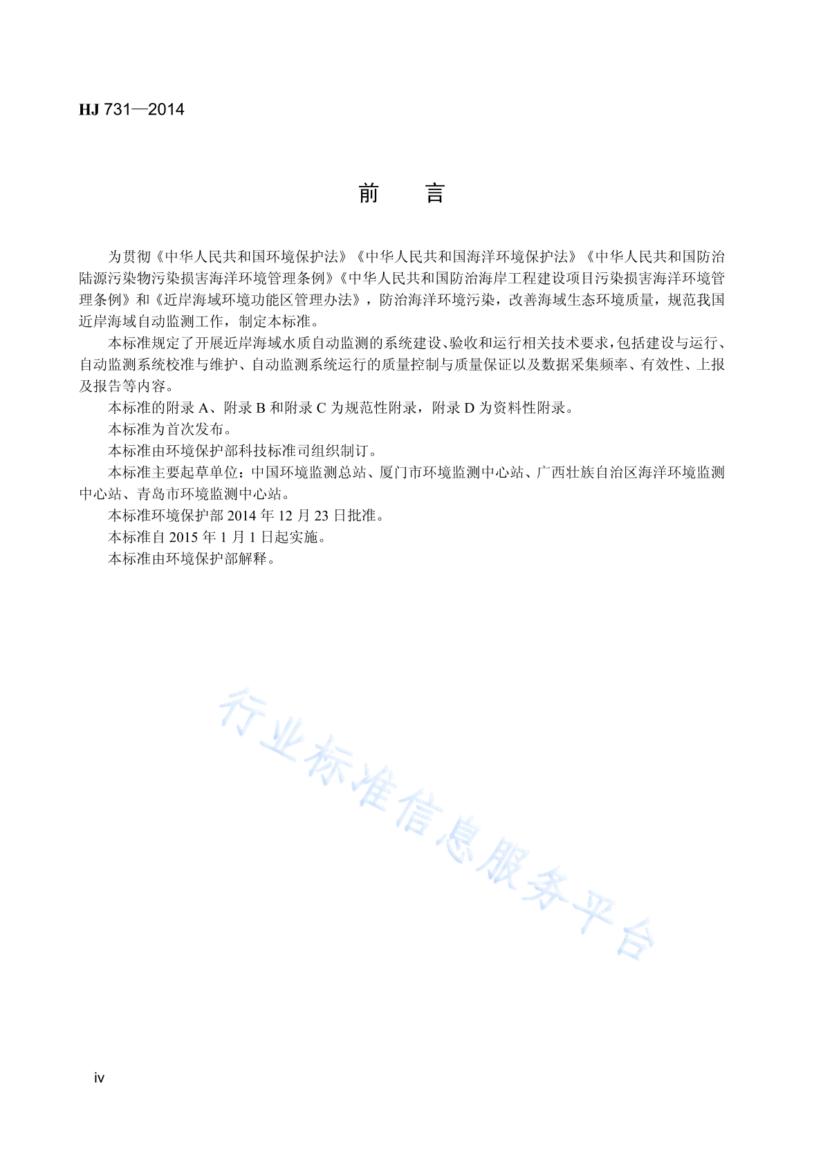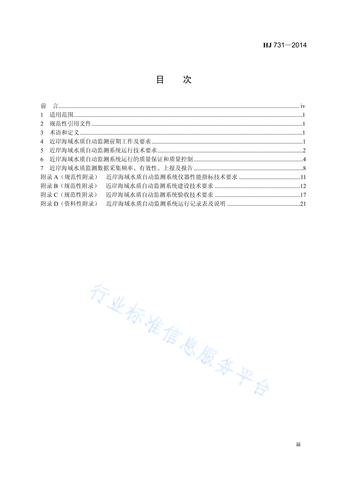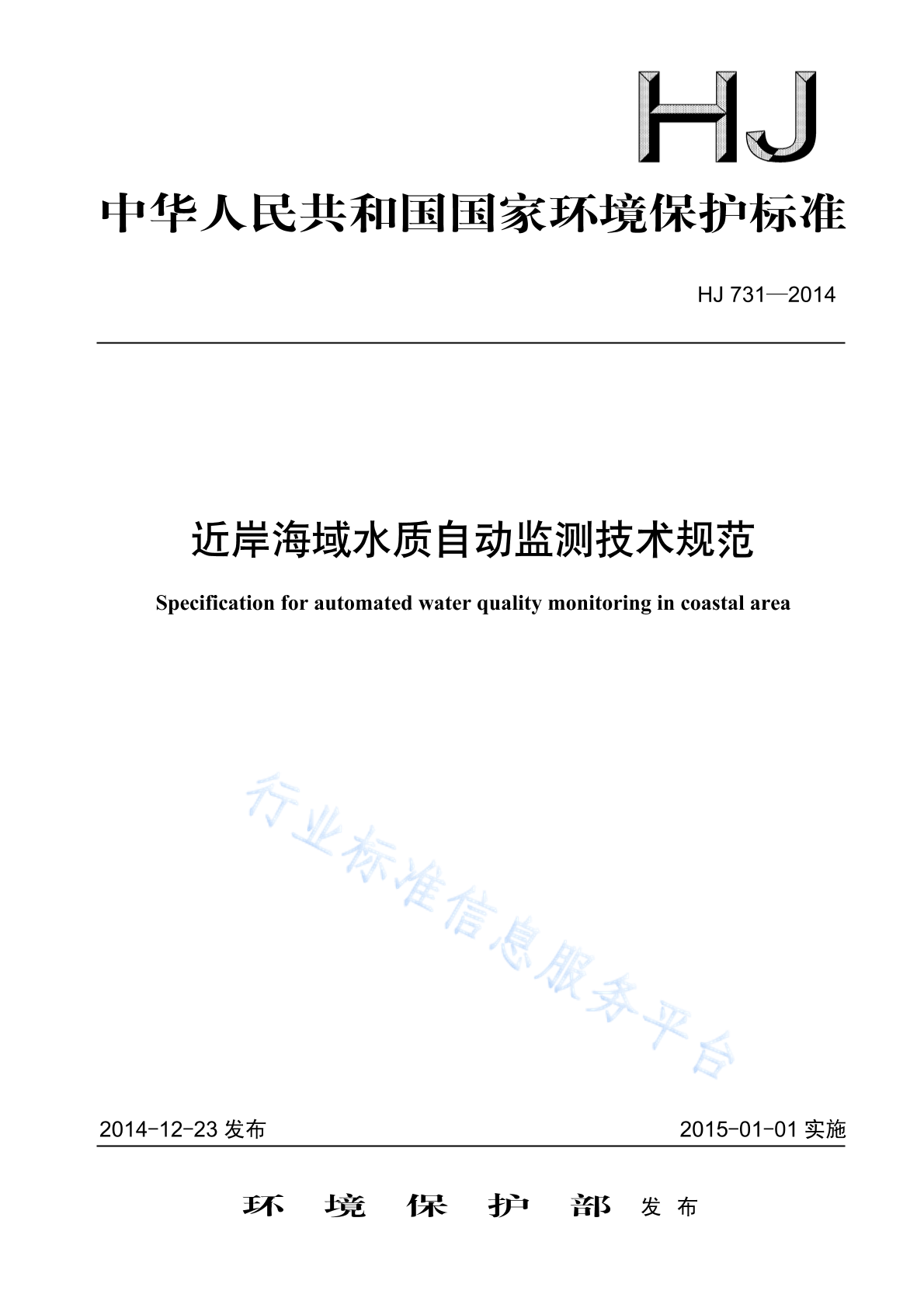 HJ 731-2014 近岸海域水质自动监测技术规范