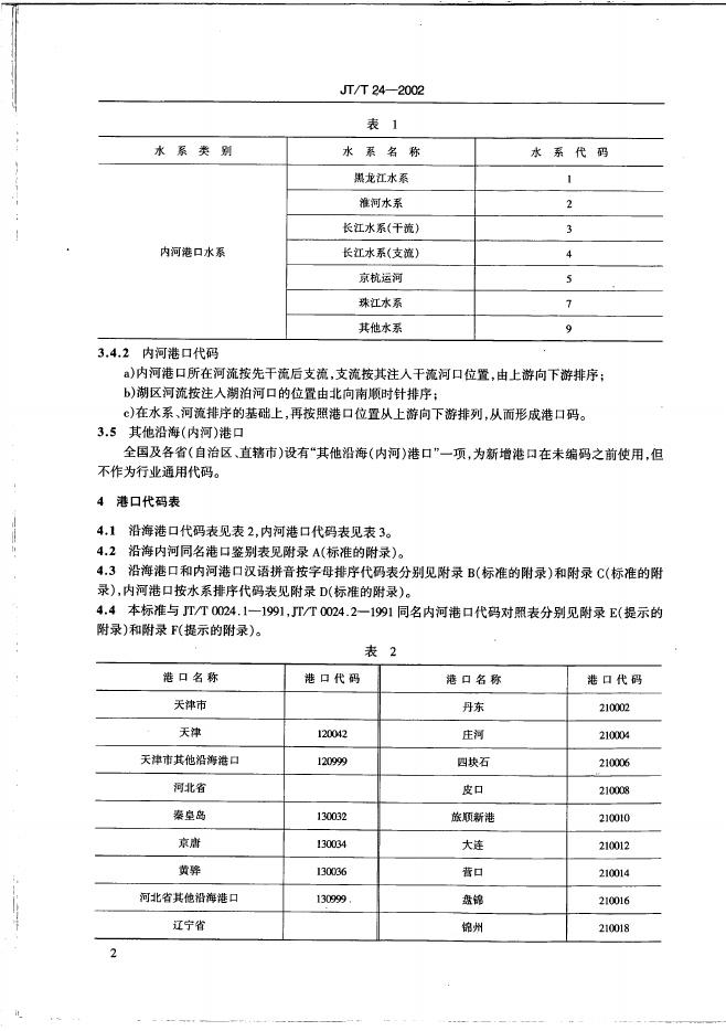 JT/T 24-2002 中国港口代码