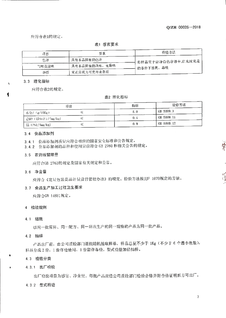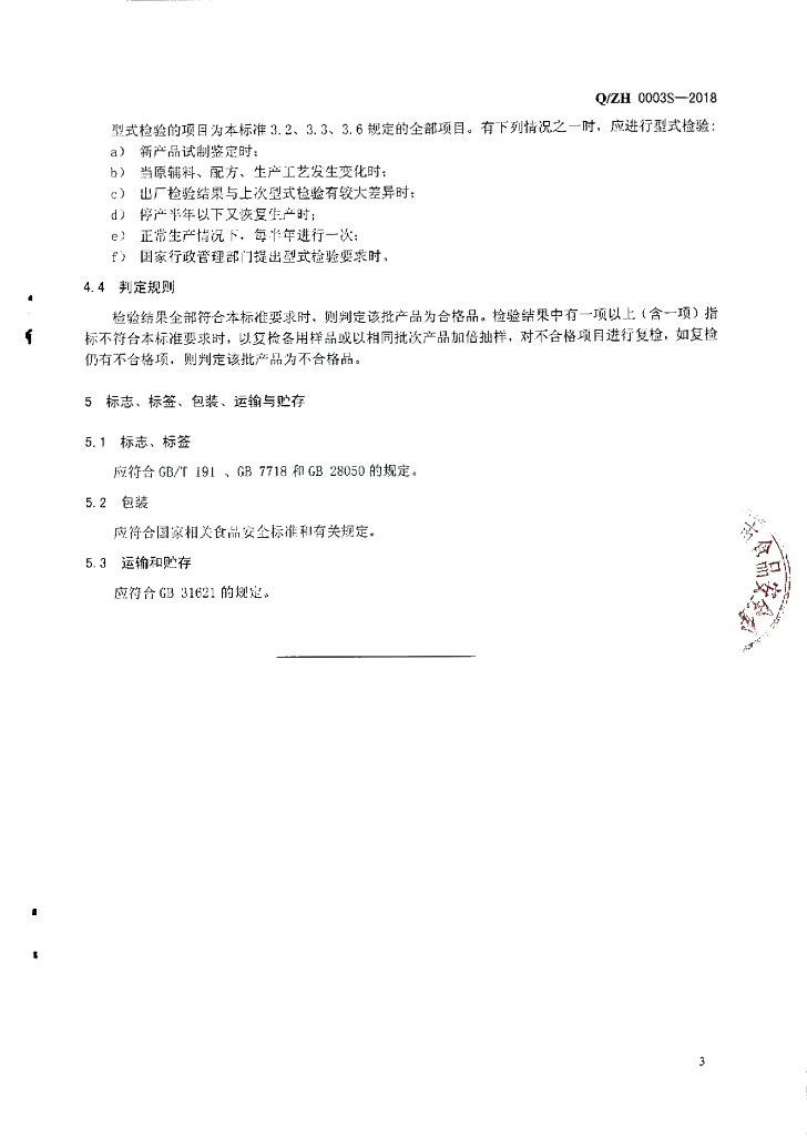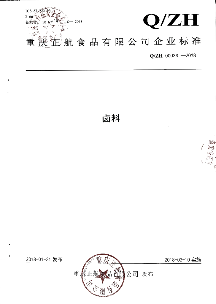 Q/ZH 0003S-2018 卤料