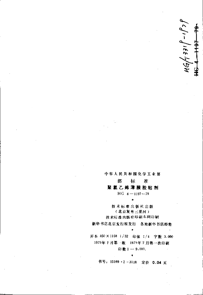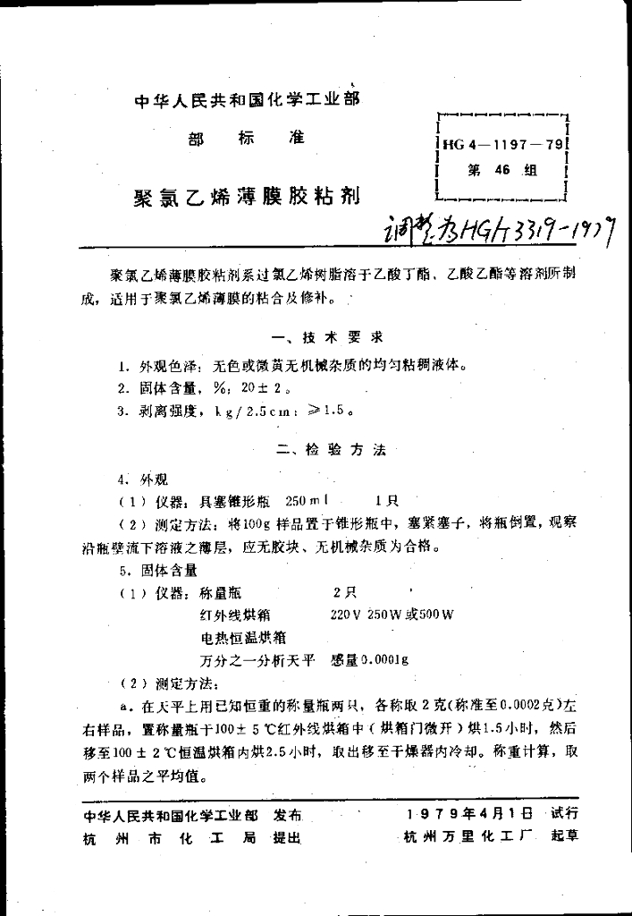 HG 3319-1979 聚氯乙烯薄膜胶粘剂